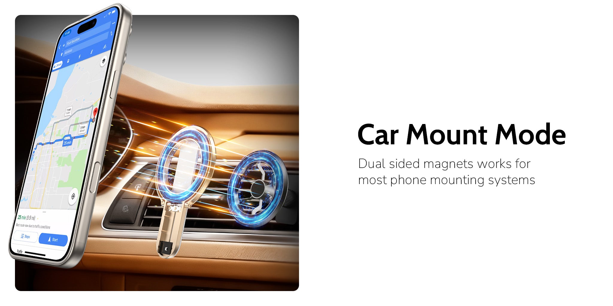 GripMate 2 has built-in magnets for automatically aligning and attaching to your MagSafe or PixelSnap compatible phone or a phone case with magnetic ring functionality.