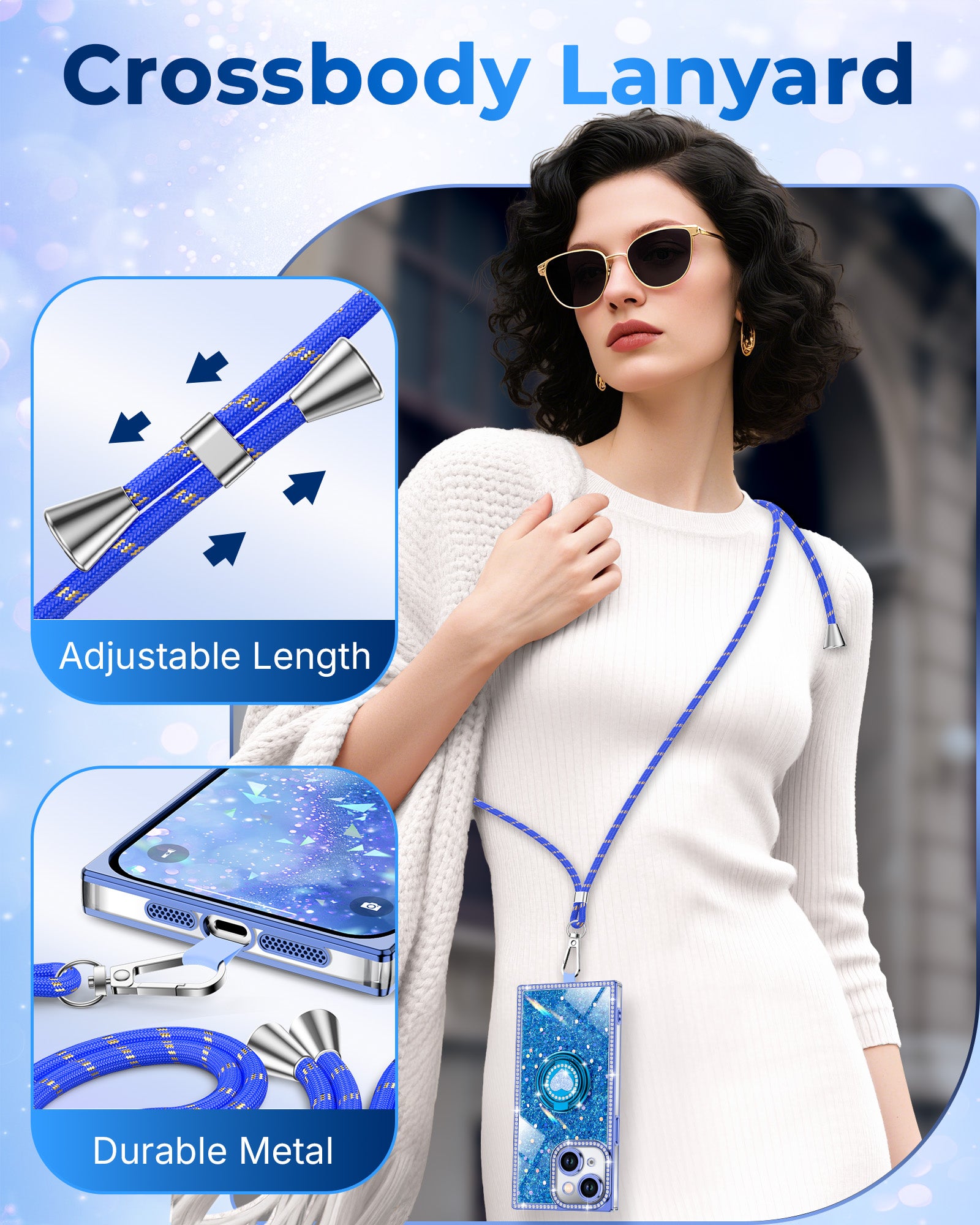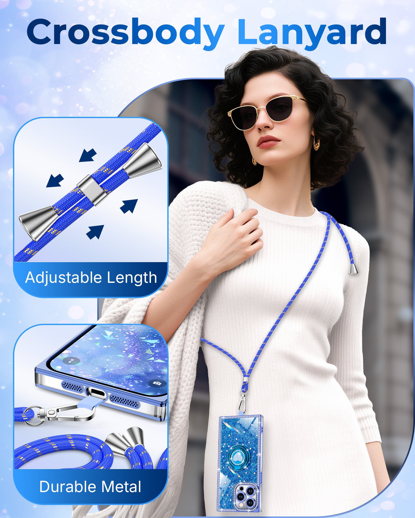 Welcome to the family the XYZ Sparkle Stones Case , a dazzling blend of shimmer, shine, and everyday protection. Designed with crystal-lined chrome edges, a super sparkling back, and a dual foldable ring stand, this case turns your phone into an icon. The adjustable lanyard lets you wear it your way, while the rotating double ring keeps your grip comfy and your hands free for selfies, video calls, and scrolling. Extra glam, extra sparkle, and extra practical all in one stunning case.